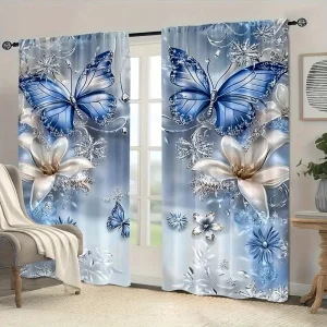 Be the first to review “Blue Floral Butterfly Curtains Set of 2 with Rod Pocket Sheer Drapes”